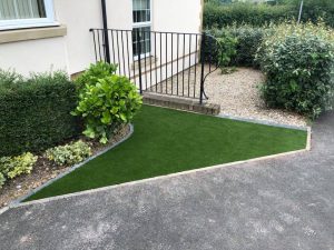 Newly completed artificial lawn say goodbye to weed infested grass, mowing and leather jackets and say hello to low maintenance and a lovely clean cut fresh green lawn.