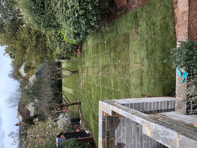 New lawn supplied & laid in Sidmouth DEVON on a wet April Day.