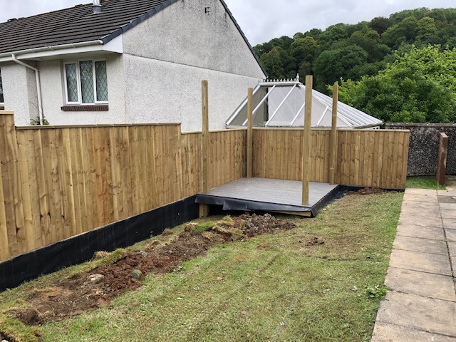 New feather edge fence & Composite decking for a sensory garden in Chudleigh.