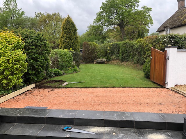 We have been contracted to lay a slate patio to complete some previous work, and to relay a compacted weed infested lawn with new turf.