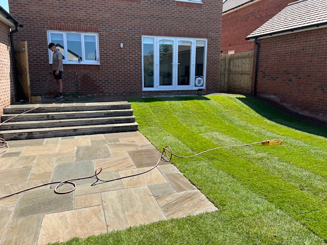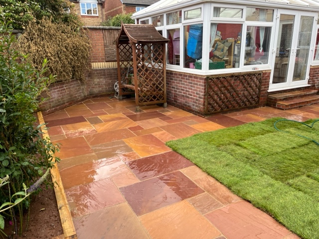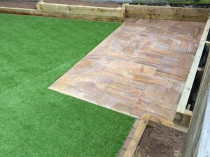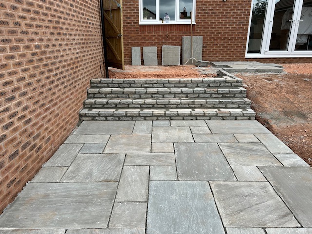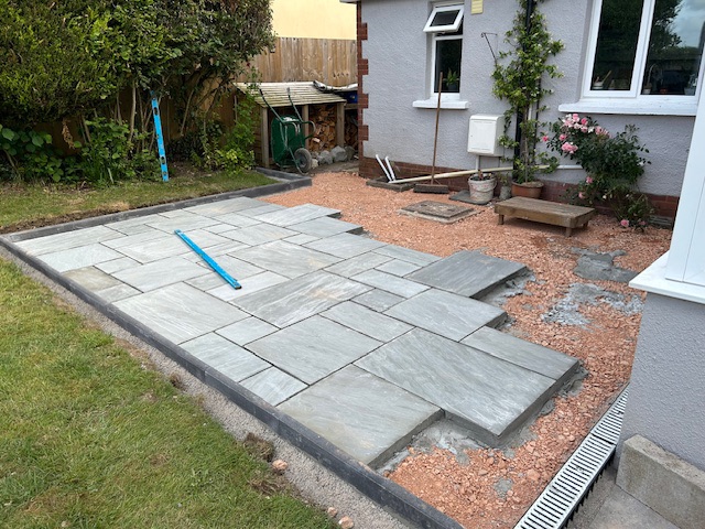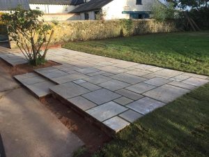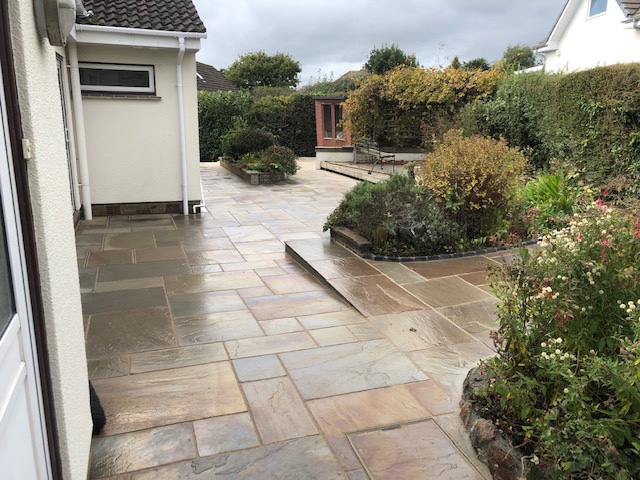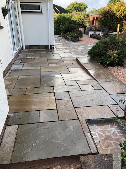 Hares Landscapes slabbing and paving service offer the removal of old, broken or just outdated patios and path areas. We lay natural sandstone and concrete patio slabs with added edging or circular kits options. Our quality and professional finishes offer years of enjoyment to your outside space. We also now offer the new alternative to the old mortar pointing with new resin type jointing.