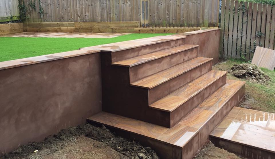 Hares Landscapes slabbing and paving service offer the removal of old, broken or just outdated patios and path areas. We lay natural sandstone and concrete patio slabs with added edging or circular kits options. Our quality and professional finishes offer years of enjoyment to your outside space. We also now offer the new alternative to the old mortar pointing with new resin type jointing.